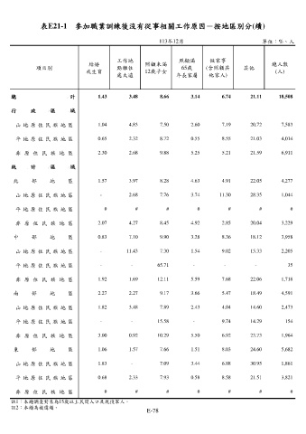 表E21-1 參加職業訓練後沒有從事相關工作原因-按地區別分(續)