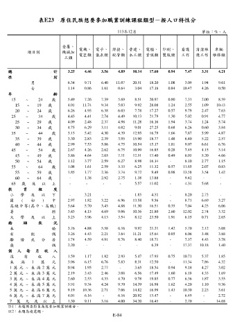 表E23 原住民族想要參加職業訓練課程類型-按人口特性分
