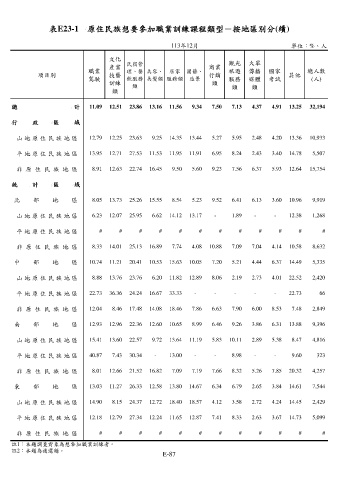 表E23-1 原住民族想要參加職業訓練課程類型-按地區別分(續)