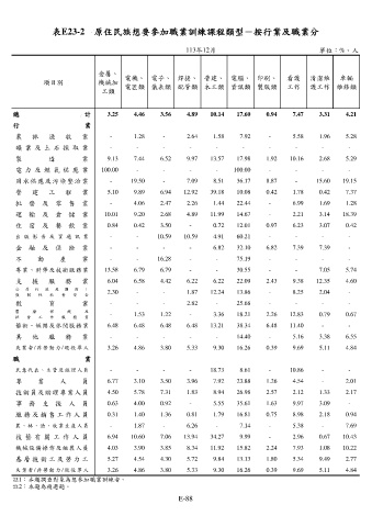 表E23-2 原住民族想要參加職業訓練課程類型-按行業及職業分