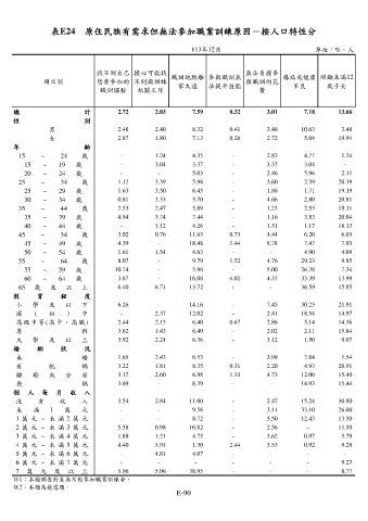 表E24 原住民族有需求但無法參加職業訓練原因-按人口特性分
