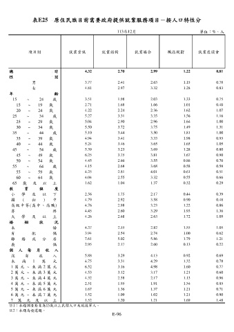 表E25 原住民族目前需要政府提供就業服務項目-按人口特性分