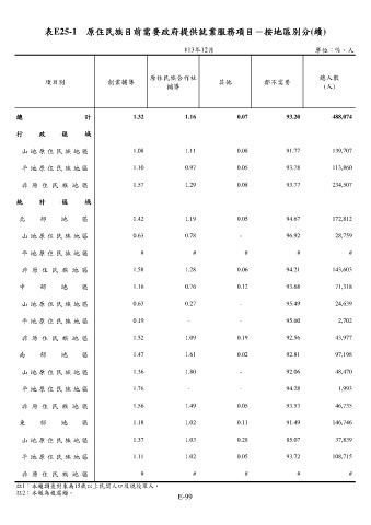 表E25-1 原住民族目前需要政府提供就業服務項目-按地區別分(續)