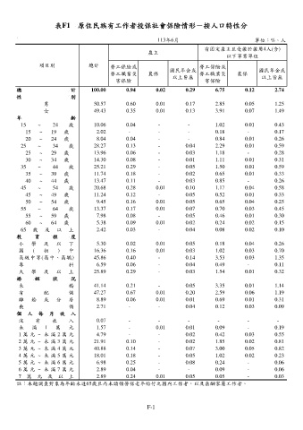 表F1 原住民族有工作者投保社會保險情形-按人口特性分