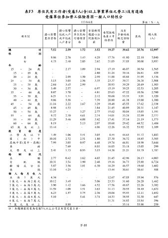 表F3 原住民有工作者(受雇5人(含)以上事業單位之勞工)沒有透過