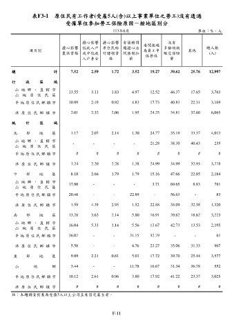 表F3-1 原住民有工作者(受雇5人(含)以上事業單位之勞工)沒有透過