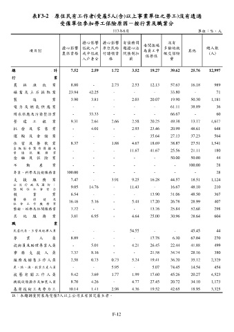 表F3-2 原住民有工作者(受雇5人(含)以上事業單位之勞工)沒有透過