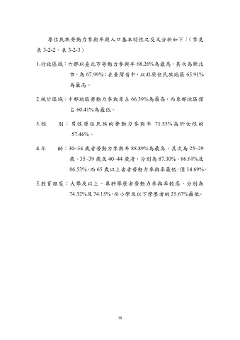 原住民族勞動力參與率與人口基本特性之交叉分析如下:(參見