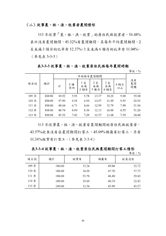 表3-3-3 從事農、林、漁、牧業原住民族每年農閒時期